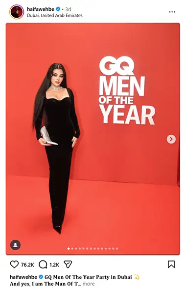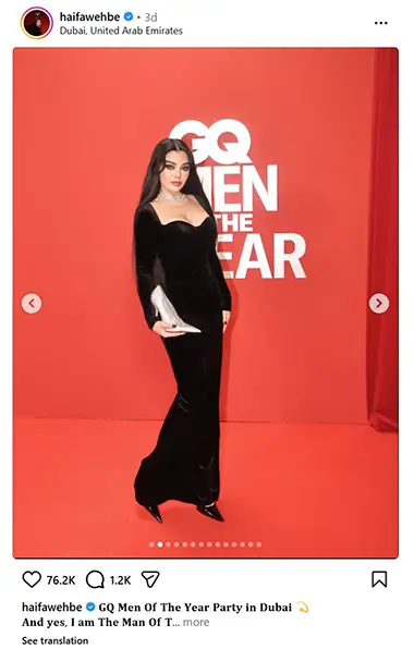 ما يجعل هذا الفستان لا يُنسى ليس فقط شكله، بل كيف يعكس روح هيفاء. هي دائماً ما تقول في مقابلاتها إن الموضة بالنسبة لها “تعبير عن الثقة”، وهنا، الأسود يرمز إلى القوة غير المعلنة – ليس صاخباً مثل الذهب، لكنه يلفت الأنظار بصمته.